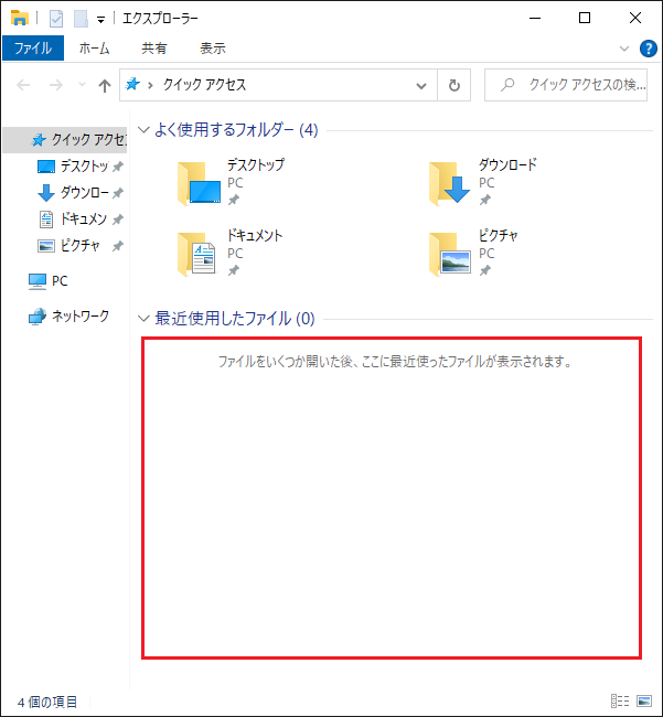 ファイルエクスプローラーを使用して最近使ったファイルを確認する