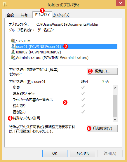アクセス許可ダイアログボックスでは、読み取り、書き込み、実行などのアクセス権限を設定できます。また、継承を使用して、親フォルダのアクセス権限を子フォルダに継承させることもできます。ACLの設定には、適切な知識と経験が必要であり、誤った設定を行うと、ファイルやフォルダへのアクセスができなくなる可能性があります。