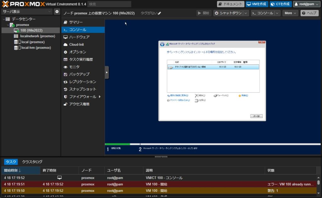 Windowsのインストールは、ProxmoxでWindows仮想環境を構築する上で重要なステップです。Windows仮想マシンを作成した後、ISOイメージをアップロードしてWindowsのインストールを開始します。アップロードしたISOイメージは、Proxmoxの仮想マシンの設定で指定します。