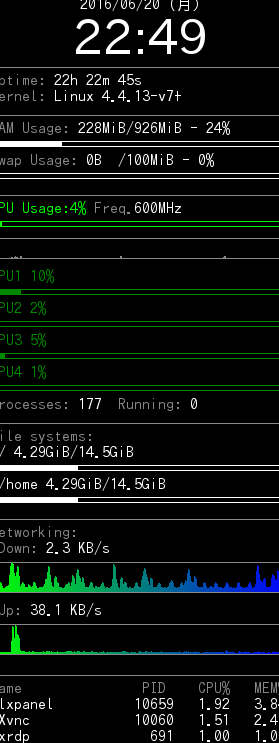 Conkyを実行すると、デスクトップにシステム情報が表示され、グラフ化して表示することもできます。グラフ化することで、システム情報の変化をより直感的に把握することができます。さらに、Conkyはカスタマイズが可能なので、ユーザーは自分の好みに合わせてシステム情報の表示を変更することができます。